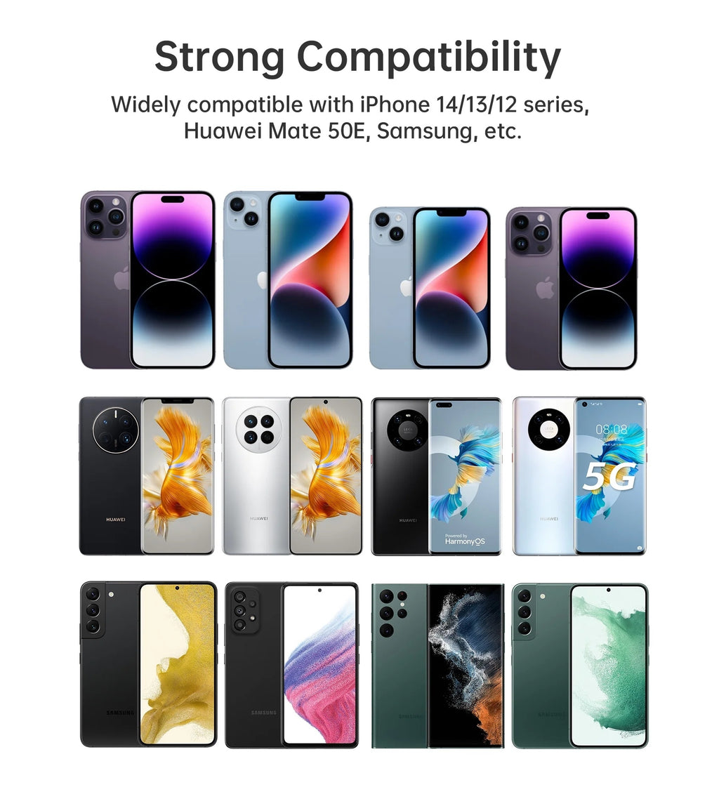 This power bank delivers optimized charging to a wide variety of mobile devices, including phones, tablets and more - like the iPhone Series 12, 13 and 14, Huawei Mate 50E, Samsung Galaxy S21, S22, S23