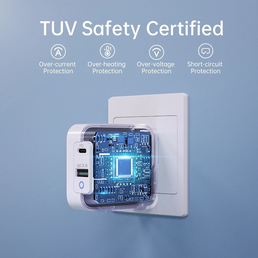 TUV Certified, after rigorous testing, made of fire retardant PC material and design with over-current, over-voltage, over-heating, and short-circuit protection, exhaustive protection while high-power outputting. Ensure safety charge for you and your laptops and phones with this 65w usb c charger.