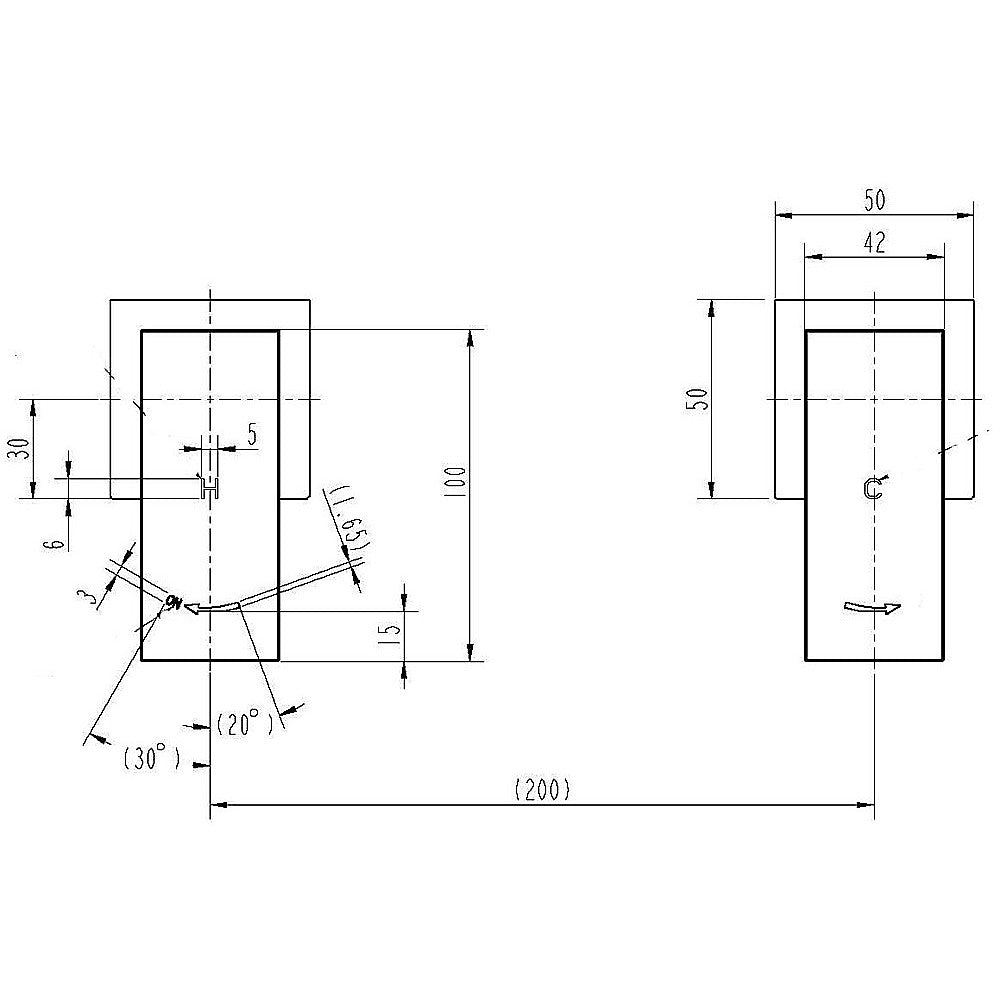 width of handle:42mm; dimension of base plate: 50 x 50mm; and, distance between handles: 200mm.
