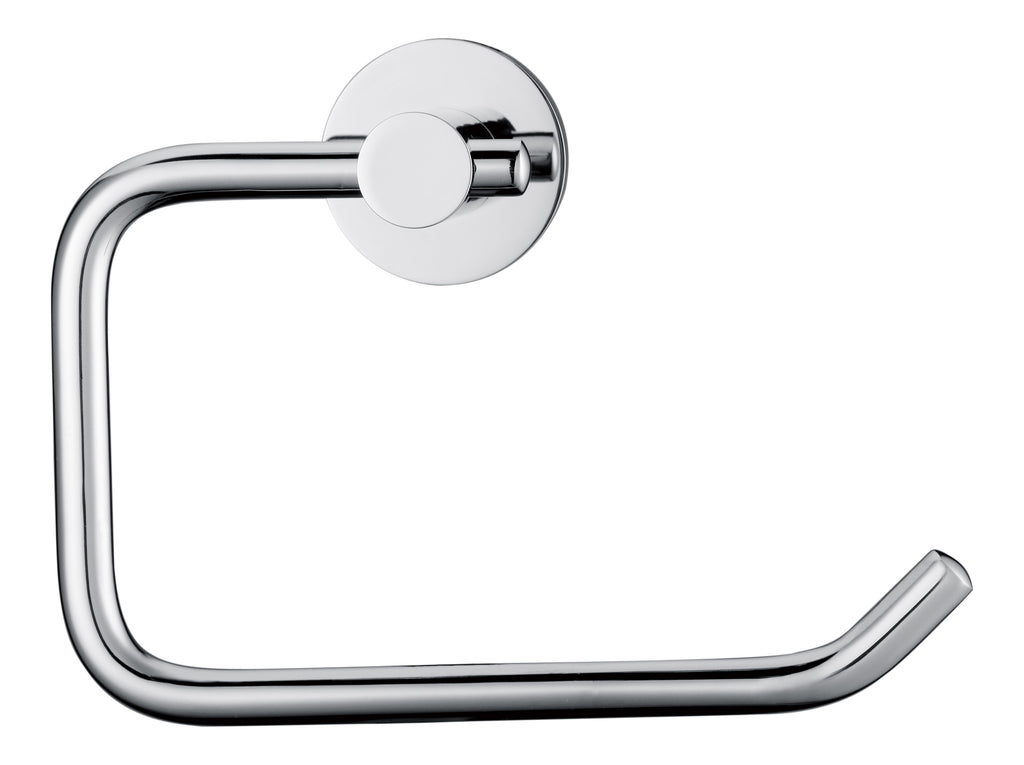 This toilet paper holder has a brilliant chrome finish. A simple hook design keeps the toilet paper on the holder without the need for a spring roller. A modern sleek design is built to last and updates any bathroom.