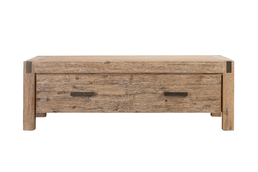 There is a metal made design on the both sides of the coffee table to offer a matching look with the handles. Nonetheless, metal wire brushed finish is given to it for a rustic look.
