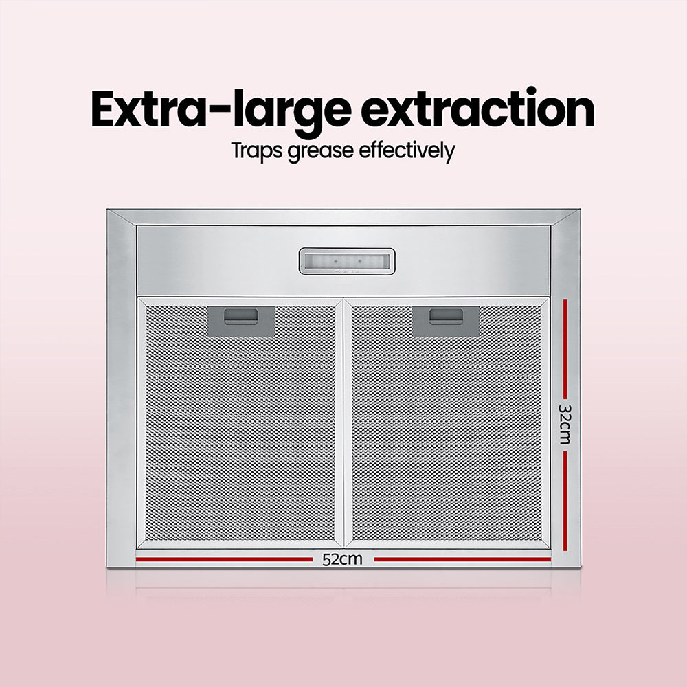 Thick smoke and steam from your cooking. Stifling odours all around. And your range hood is not doing its work to clear the mess. Not anymore with Comfee 900mm Range Hood. Featuring a powerful extraction rate of 550m³/hr from a high performance 110W rated motor, our stainless-steel range hood will clear the air of smoke, steam, odours and vapours in no time at all. The non-stick and removable 5-layer aluminium grease filter ensures all grease is efficiently captured. Completing the job is a 3-speed fan that can be easily selected with the rocker button switches. Clear and bright LED lights also provide vivid illumination for your cooking area, so you can see everything you're cooking.