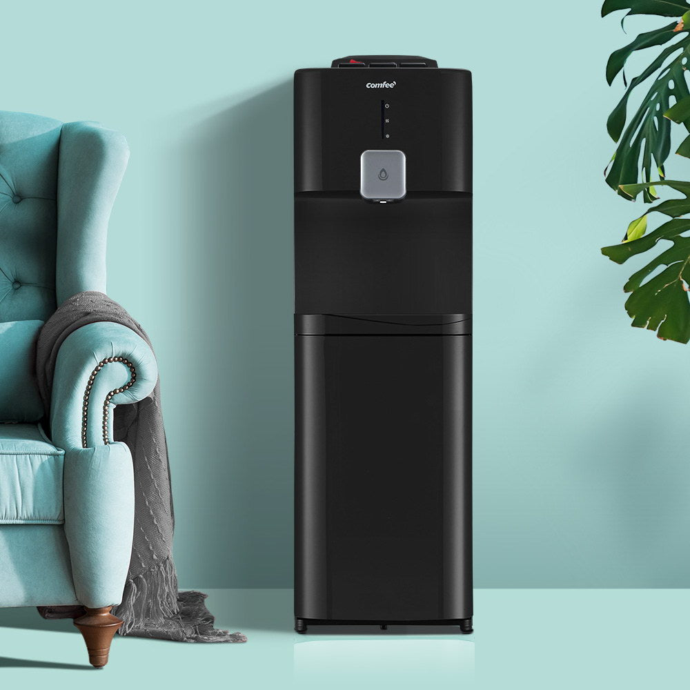 Have access to cleaner and purer water at all times with the Comfee Water Dispenser. Designed to work with most bottled water or water purifying bottles, the dispenser features a high-efficiency compressor that works quietly and reliably, and enables selective cooling and boiling for more energy savings. It comes with a detachable water guide plate that can cater to either water containers. The dispenser has LED indicators for easy operation and features the latest one-faucet design for hot and cold water options. Even better, the hot water has three water temperature options to suit your needs. A removable drip tray also allows for easy cleaning. For added safety, the dispenser has overheating protection and a child lock to prevent children from tampering with the hot water options. Not least, the water dispenser has a large storage cabinet to store any accessories or drinking essentials.
