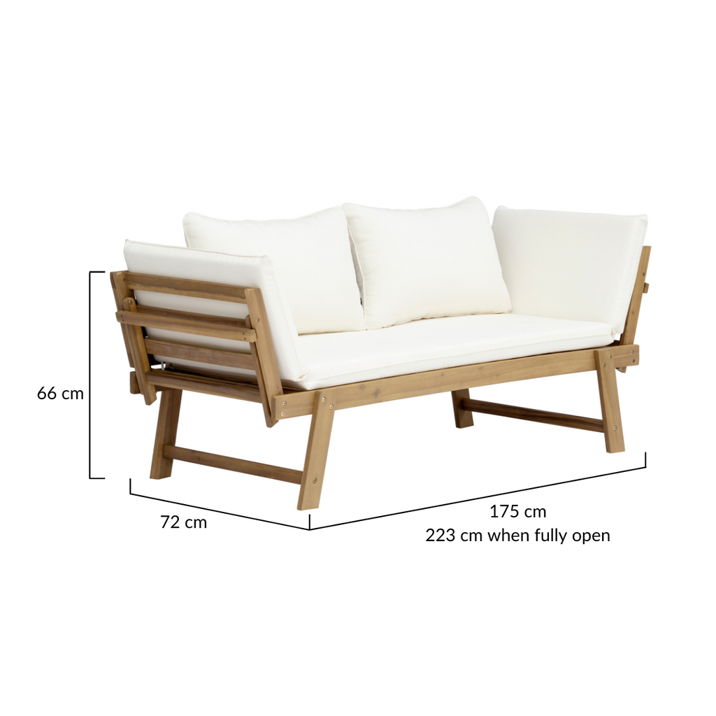 If the warm sun makes you long for an al fresco siesta in the middle of your book, simply turn the cozy two-seater sofa into a luxurious daybed with a push on the armrests and catch up on your reading later.