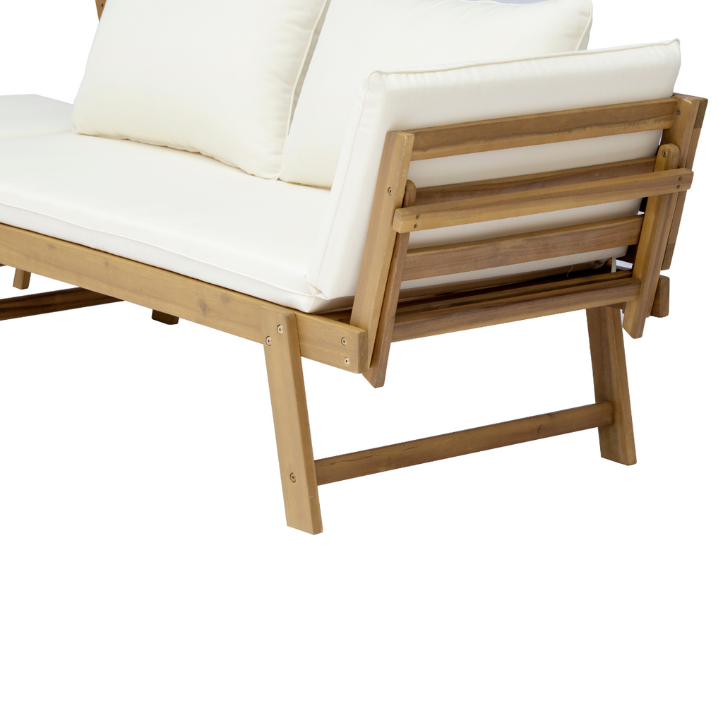 Between the warm medium wood tones of the acacia frame and the neutral cushions, the Cora Outdoor Daybed fits any home decor.