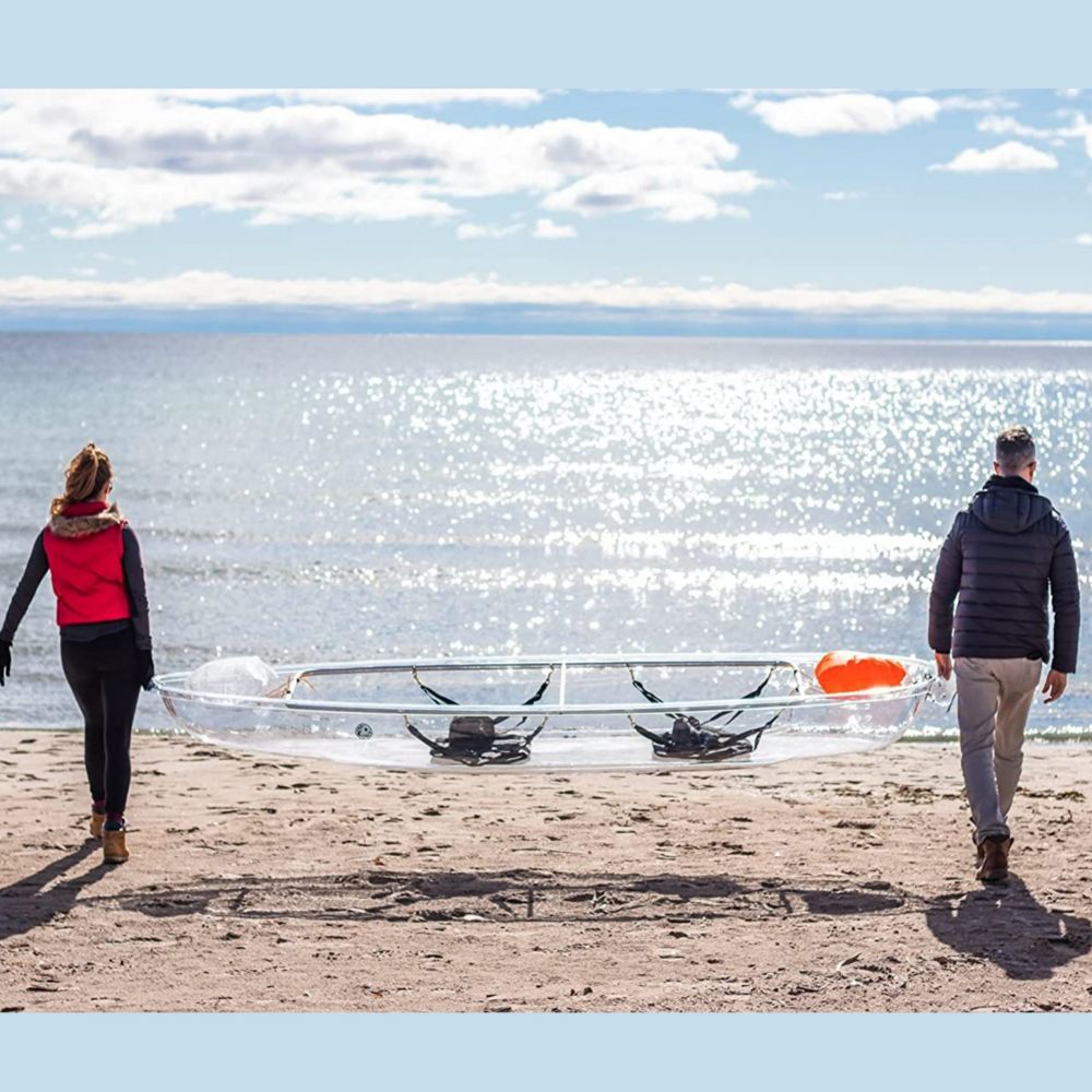 Full Transparent: 100% clear kayak hull helps you discover a whole new world while paddling, and you'll be amazed at what you can see: corals, reefs, fish, marine life. Also what we have is the update version of this kayak, the hull is updated with no black rubber edge, it is all clear!