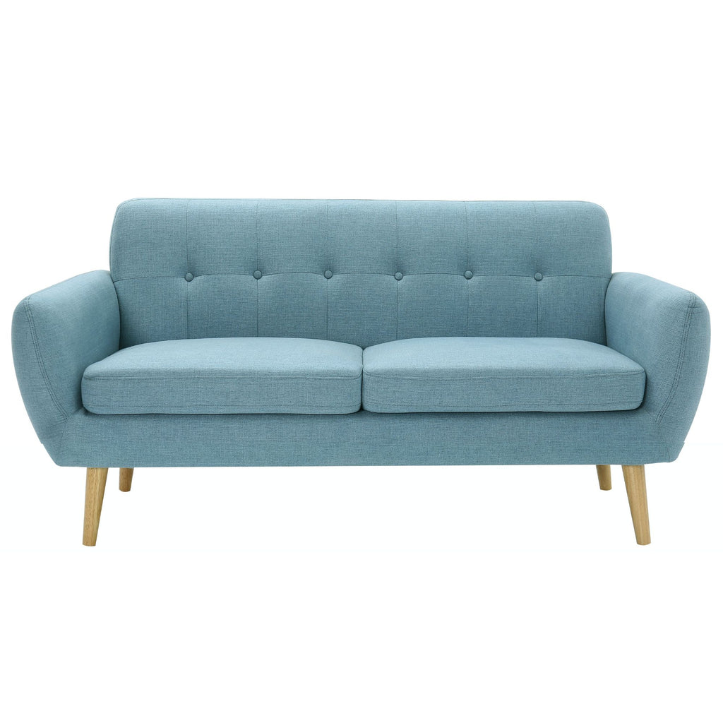 A sofa is the focal point of a living room. Place this beautiful sofa, designed in the Scandinavian style, in your living room and it will instantly become the most stylish part of your home. The 3-seater sofa is an epitome of superb craftsmanship. It showcases comfy looks, featuring tapered legs and outwardly sloping arms. It has a fixed backrest with button details and loose-style seat cushions with high-density foam for superior comfort. The sofa in blue colour mixes easily with any interior decor style. The entire sofa is upholstered in 100% polyester fabric, which is soft and durable. The stunning sofa also features high-density foam, webbing, pocket springs, and S-springs that ensure complete relaxation for the body. The structural frame of the sofa is made of sustainably harvested solid wood and plywood, which gives it internal strength and resilience. The frame has a five-year warranty; the foam and springs have a three-year warranty; the fabric and stitching have a one-year warranty; and all other parts have a one-year warranty.