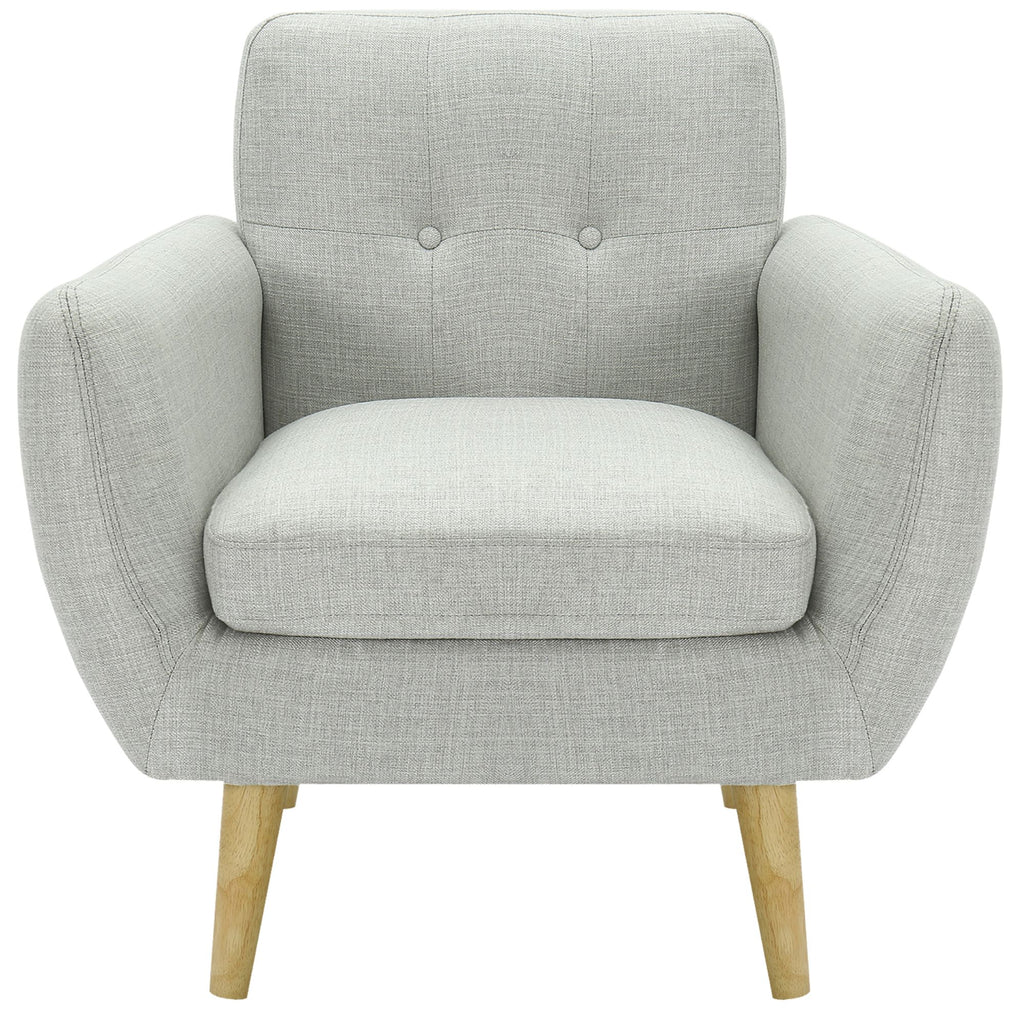 A sofa is the focal point of a living room. Place this beautiful 2-piece set of sofas, designed in the Scandinavian style, in your living room and it will instantly become the most stylish part of your home. The single-seater sofa set is an epitome of superb craftsmanship. They showcase comfy looks, featuring tapered legs and outwardly sloping arms. They have a fixed backrest with button details and loose-style seat cushions with high-density foam for superior comfort. The armchairs in light grey mix easily with any interior decor style. The entire sofa is upholstered in 100% polyester fabric, which is soft and durable. The stunning sofas also feature high-density foam, webbing, pocket springs, and S-springs that ensure complete relaxation for the body. The structural frame of the sofa is made of sustainably harvested solid wood and plywood, which gives it internal strength and resilience. The frame has a five-year warranty; the foam and springs have a three-year warranty; the fabric and stitching have a one-year warranty; and all other parts have a one-year warranty.