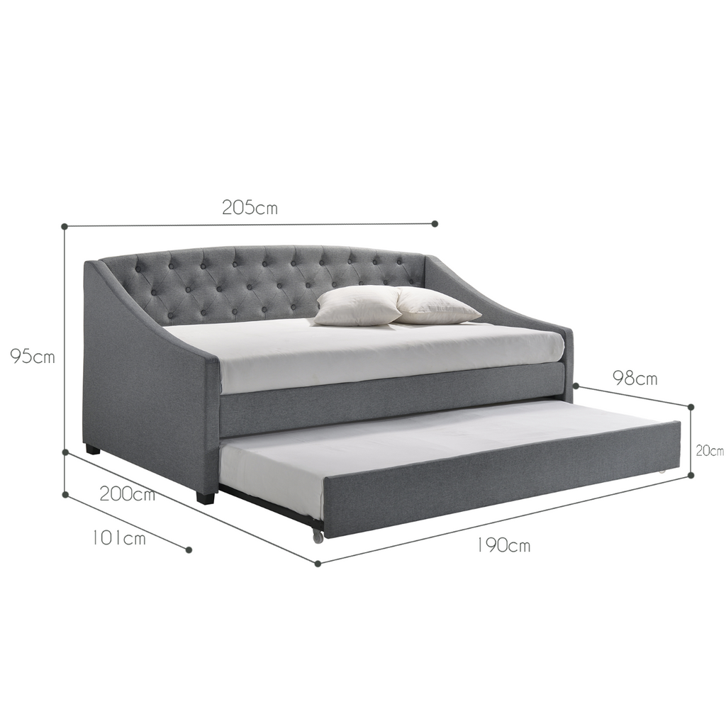 Create cozy and versatile living space with this stately and glamorous daybed with a hidden trundle that serves multiple function. A perfect addition to a guestroom or living room. This daybed gives you the space to lounge during the day and sleep at night.