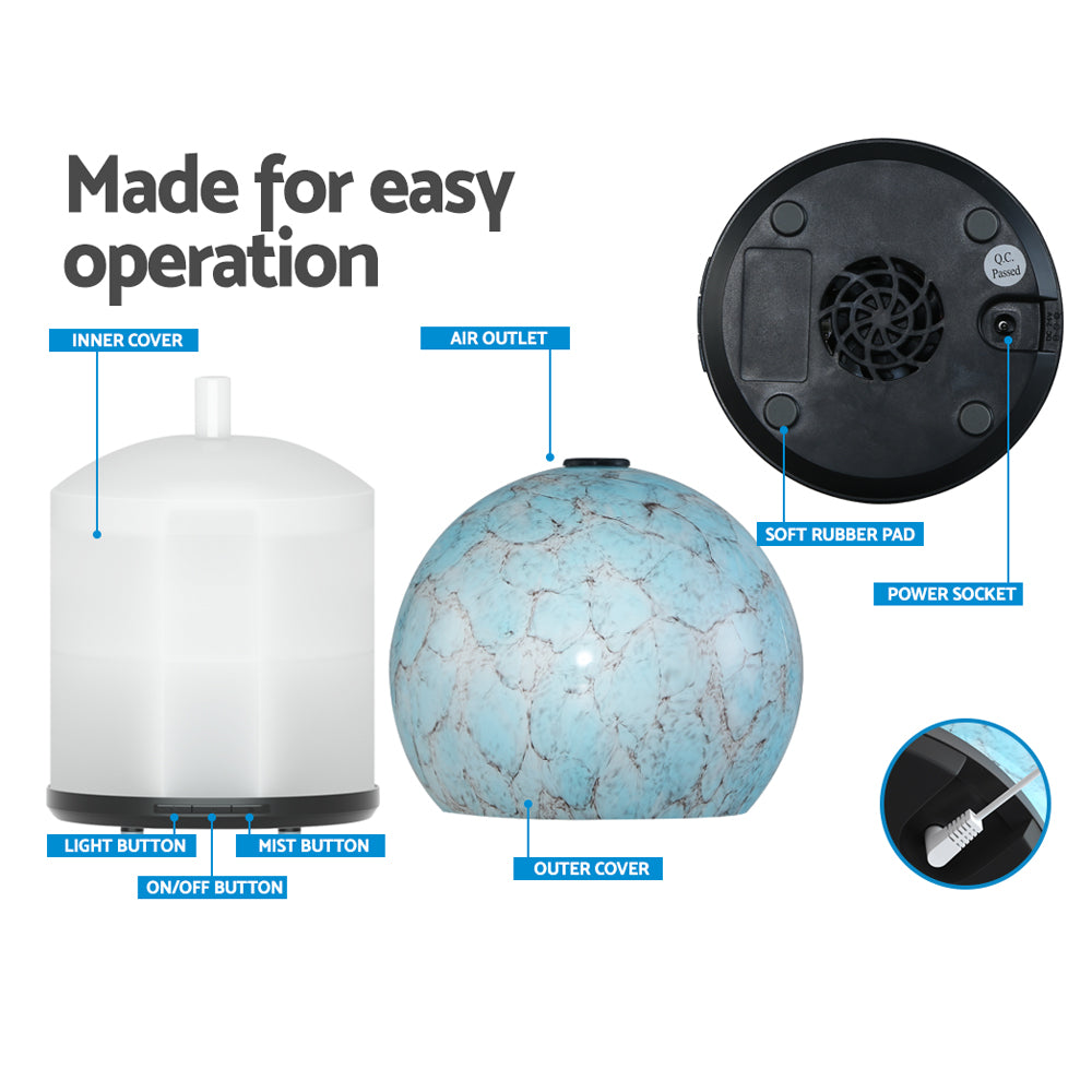 Enjoy the calm and soothing vibes from our beautifully designed Aroma Diffuser. Compact and smooth, the diffuser works in four ways: as a humidifier, purifier, night light and aromatherapy device. Using ultrasonic technology, the diffuser uses electronic frequencies to create vibrations in water. These are carried to the surface to mix with essential oils into a fine mist and create lovely therapeutic fragrances that fill the air. A wonderful way to purify and humidify dry and lifeless air. The diffuser comes with two mist frequency adjustments, two levels of brightness and 2 timer settings to meet your exact preferences. The low water auto shut off automatically detects water levels and turns off the device when empty, so you don't have to worry about damaging the device with prolonged use. Best of all, a 7-colour LED night light with a semi-transparent cover to give you soothing hues all through the day or night.