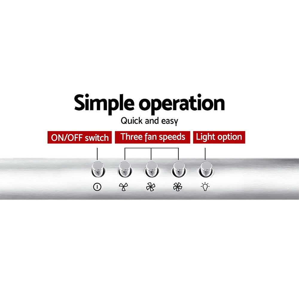 The Devanti Range Hood features an elegant Grade-A stainless steel body that looks as good as it functions. Its ducted design also allows multiple venting options when it comes to installing it. And you can also say goodbye to smoky fumes and unwelcomed cooking odours too. With its high-performance 125W motor, the efficient range hood provides a steady upflow and filtered extraction of fumes and oil to keep your cooktop area clean and fresh after every use. With its 3-speed touch controls, the extraction speed can be adjusted to suit the circumstances. Other features include three non-stick 5-layer aluminium filters that are removable and replaceable and two bright LED lamps to facilitate your illuminated cooking.