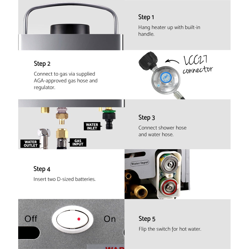 Who doesn't like a just-right warm water shower anywhere, anytime? The Devanti Gas Water Heater is all you need for that instant shower gratification.
