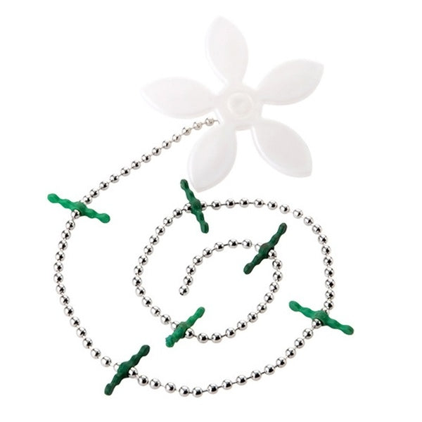 It fits right into the drain, equipped with a chain and rubber whiskers that catch pipe-clogging hair before it becomes a problem.