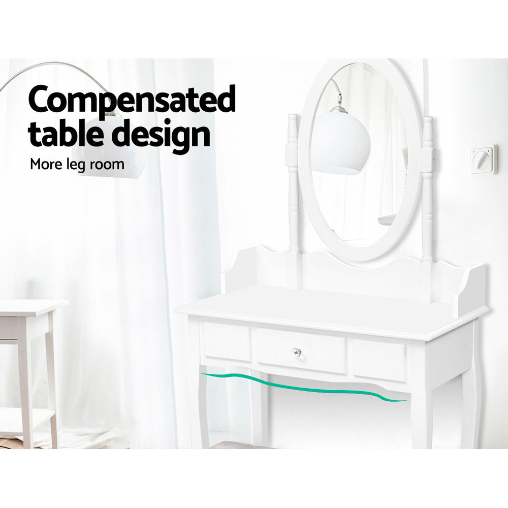 Add a touch of Provincial charm to your bedroom with our luxurious period style Dressing Table Set. Graceful and elegant, the set exudes finesse in every corner and aspect. Much like yourself as you prepare for the day in alluring beauty. Made with meticulous craftsmanship, the dressing table features elegant cabriole legs, large mirror and one drawer that provides ample storage space for your jewellery pieces and makeup essentials. It also features a compensated table design that allows more leg room for seating comfort. Plus, the mirror rotates 360° so that you can admire your reflection from any angle. And the piece de resistance must be the beautifully embroidered padded stool that is no less a work of passionate furniture making. Together, the ensemble is immediately captivating to the senses.