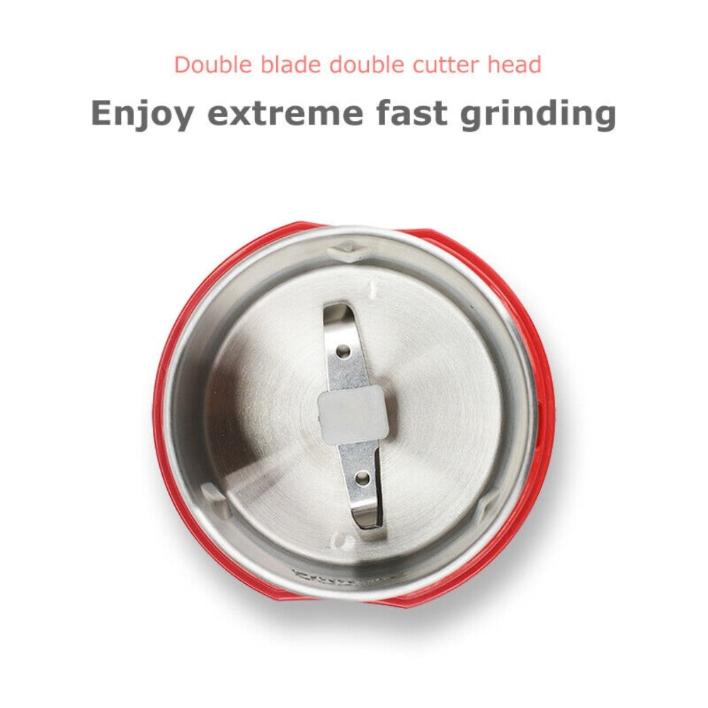 1. Features sharp, stainless-steel blades and interior for fast-even grinding, durability and easy cleaning.
