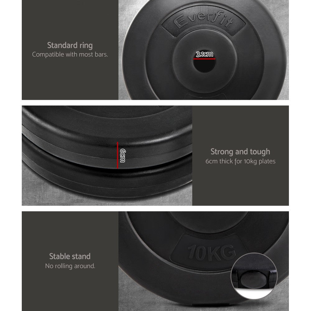 With its high quality construction and finish, this Everfit Home Gym Barbell Set will allow you strengthen and tone your muscles at home or anywhere else easily. These 40kg weight plates are filled with cast cement and covered with robust, floor-friendly plastic that allows you to work out without any annoying clanging sounds of the weights. Easily add and remove plates to ensure an appropriate workout for the muscles you are working. Plus, with a foam-wrapped barbell bar, it brings more comfort to your workouts. Not least, its detachable design enables it to double up as a dumbbell set and for easy storage.