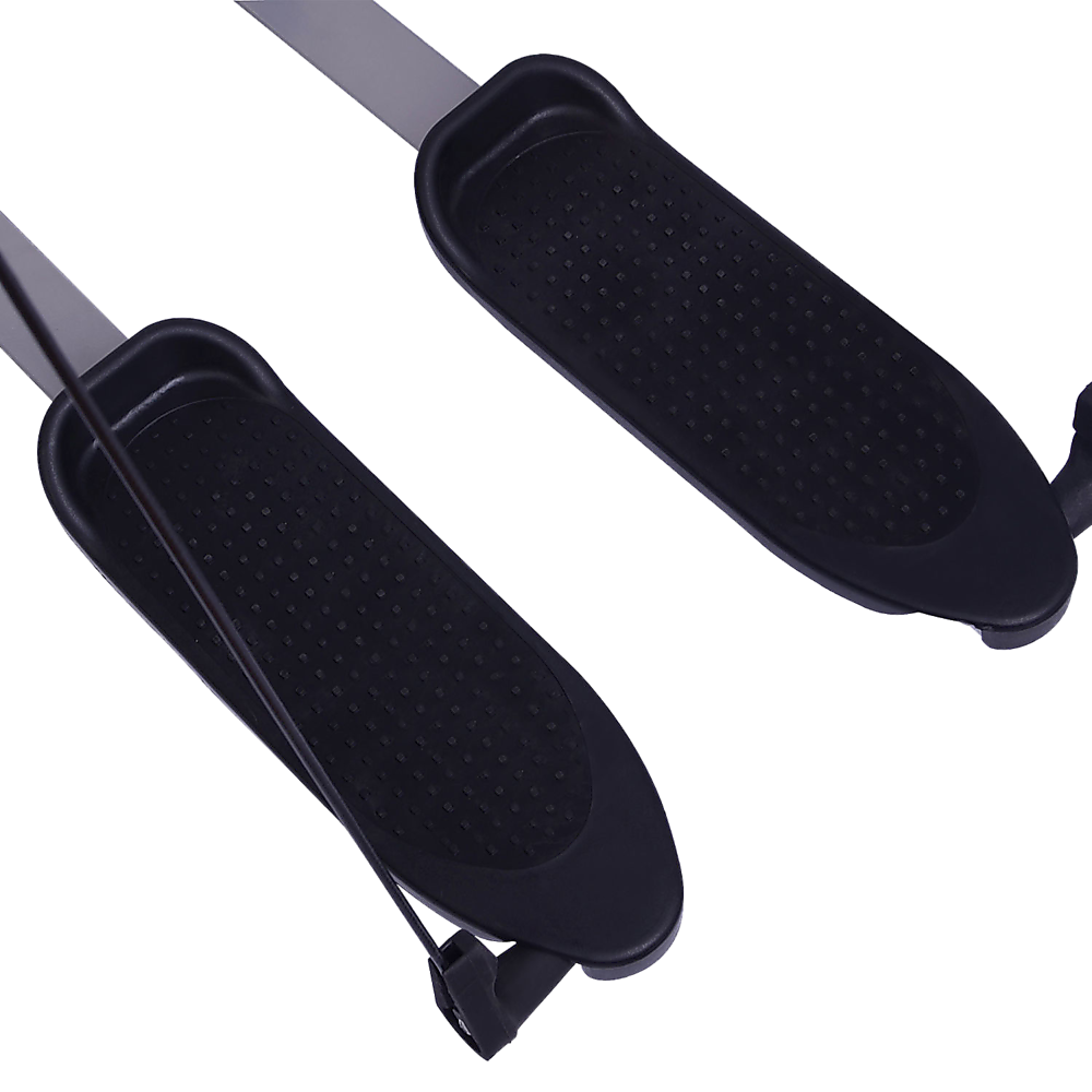 This trainer provides comfort and stability with its high-density foam covered handlebars and non-skid foot platforms. The electronic display offers readings of speed, distance, time and approximate calories burnt during your workout.