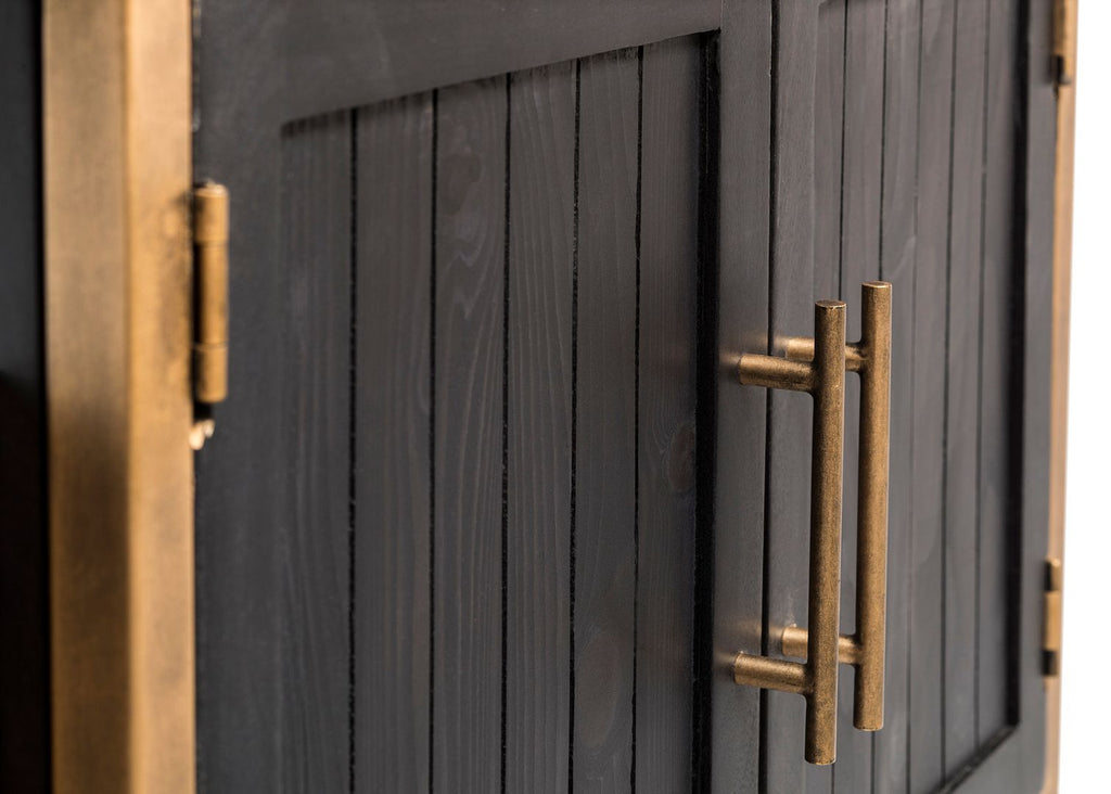 - Colour: Frame: French Brass | Shelves & Cabinet Doors: Black