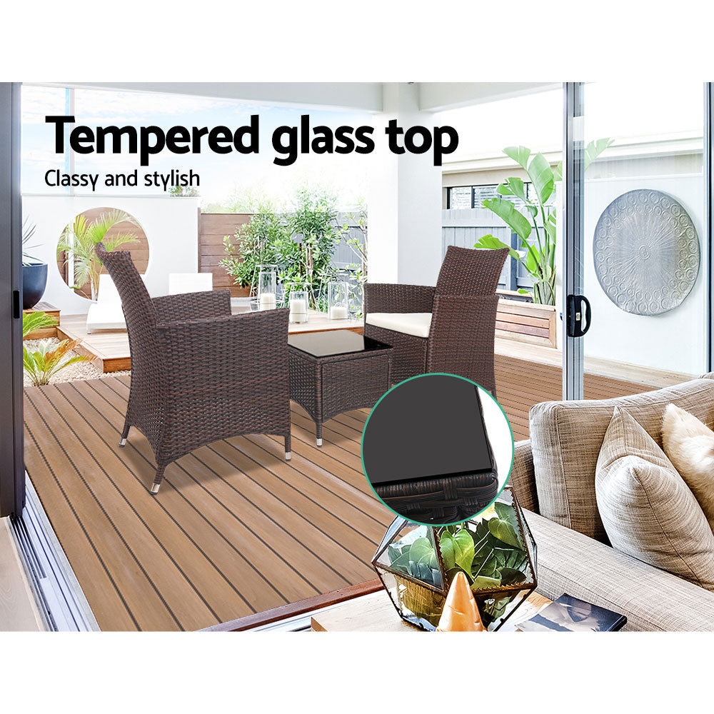 Gardeon 3pc Bistro Wicker Outdoor Furniture Set Brown