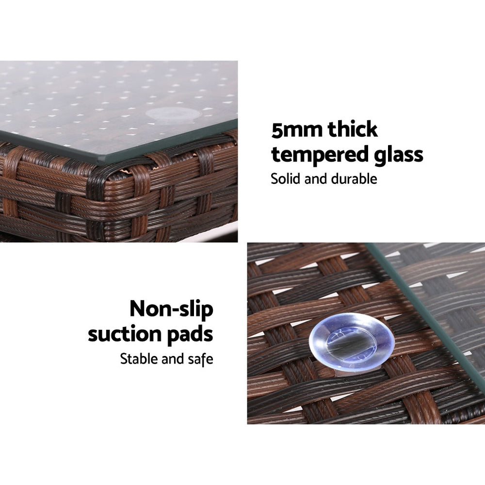 Meticulously crafted, our Gardeon 4-piece Rattan Outdoor Set comprises two armchairs, a two-seater and a matching table for a beautiful integrated look. Its presence will definitely add panache and style to your deck, patio or even living room. Made of eco-friendly PE wicker and a sturdy steel frame, this set is designed to last through all weather and the test of time. The 5mm thick tempered glass top with non-slip suction pads for the table also ensures strong and safe use with total peace of mind. Not least, the cushion covers are removable and washable to maintain their pristine appearance. There is even a bonus storage cover included for you to protect the set from sun and rain when not in use, so that you can keep enjoying your garden parties for many years to come.