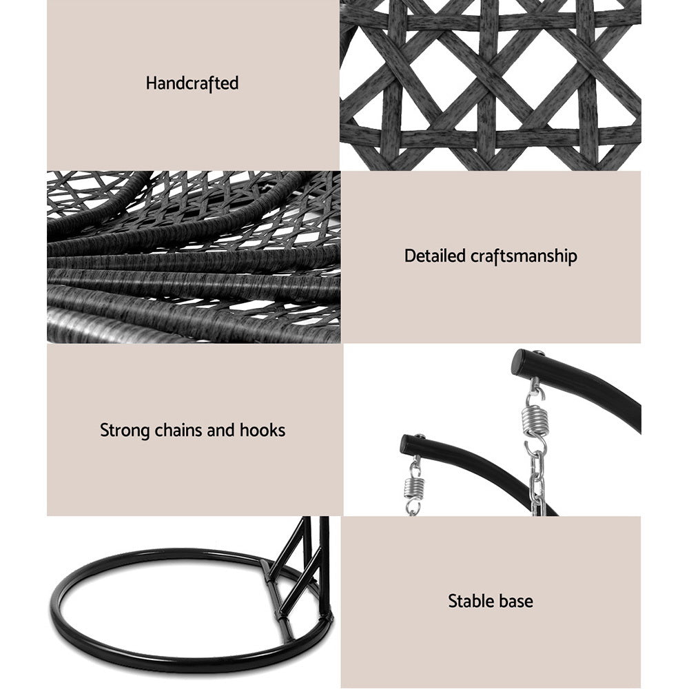 Otherwise known as the hanging egg chair, the Gardeon Hanging Pod Chair is the epitome of ultimate relaxation. Featuring 100% hand-woven UV-resistant wicker, the pod is beautifully handcrafted to give it a cool, exotic appeal that will suit any balcony, poolside, or indoor living space. It has ample space for two with a weight capacity of up to 240kg. Two supporting poles ensure added stability and strength, while the powder-coated steel finish ensures that corrosion will never be an issue. Best of all, the soft, inviting cushion offers plush comfort for day dreamers and leisure seekers alike. Hang cool people! Get your Gardeon Hanging Pod Chair just in time for summer!