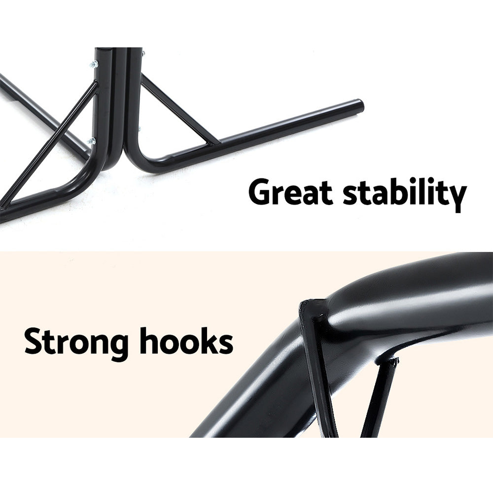Gardeon hanging hammock chair set is a piece of excellent furniture perfect for outdoor and indoor use. It is made from quality polyester cotton blend fabric and has a solid timber rail for strength and durability, and the powder-coated steel frame is designed to be weather and rust-resistant. Our hammock chair can hold up to 120kg in weight. Plus, it’s easy to install with one single attachment point for absolute safety. This versatile furniture set is suitable to be placed by the poolside, in the backyard, or in any corner of your home. Not least, this chair offers ample support to your body.