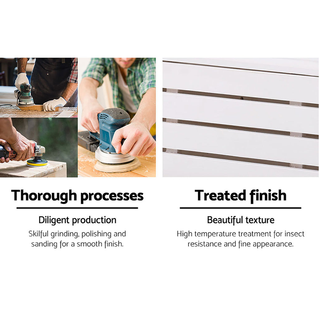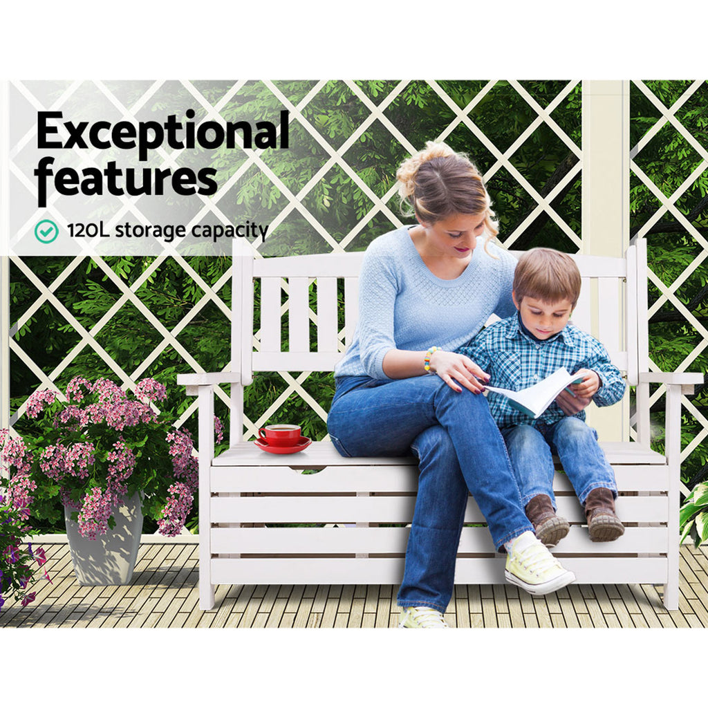 It may look like a storage box, but its function is definitely correlated to its form. That is because it also doubles as a garden bench that allows you to enjoy the fresh outdoors with your feet up. Have a cuppa, read a book, and or just chill out with friends and family among the greenery. Our Gardeon Outdoor Storage Bench is made from quality Fir wood designed for all-weather use. And the slat design gives it a timeless and yet modern appeal. Lift up the seat and you can have access to acres of storage space for gardening paraphernalia, outdoor cushions and more to ensure your garden stays neat and uncluttered. Place it in the garden, on the verandah or on your patio deck or even in your living room, our storage bench is a perfect fit in every way.