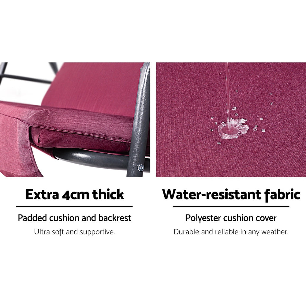 Enjoy a lazy afternoon swinging in the sun with the Gardeon Canopy Swing Chair. With ample space for three adults, the chair is perfect for having a chat with friends, reading your favourite book or just lounging the hours away.