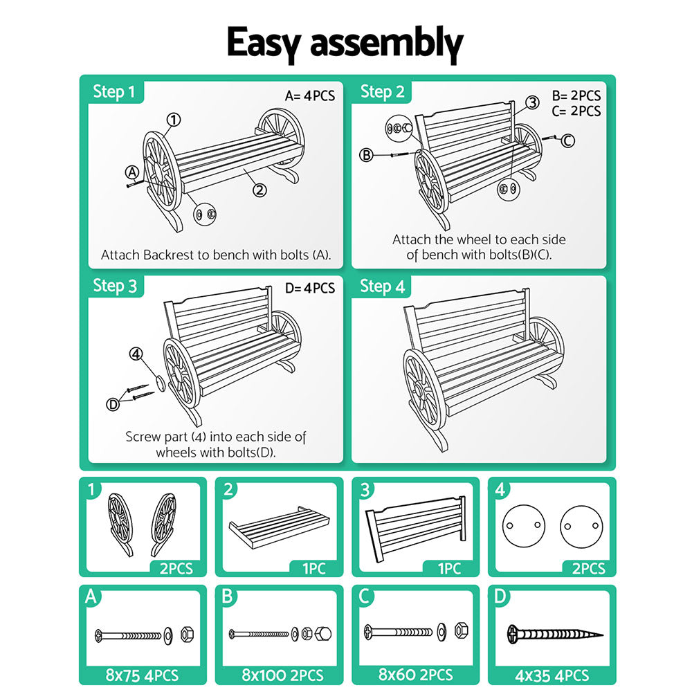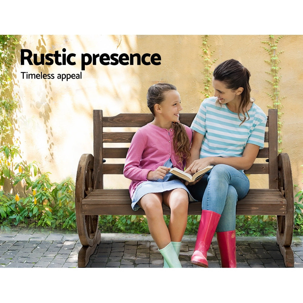 From its period styling to its rustic imported Canadian Fir wood design, the Wagon Wheels Bench is solidly built to seat two persons comfortably. The attention to detail is excellent with finely crafted wagon-wheel armrests, a smooth and supportive backrest and exceptional strength and beautiful grains from the Firwood finish. In fact, the Bench can take on a massive weight of up to 220kg. Better still, the Firwood is weather-resistant, UV-resistant and blessed with a natural resistance to rot and pests. Everything you want in a durable and long-lasting garden bench under the great Australian sun and rain.