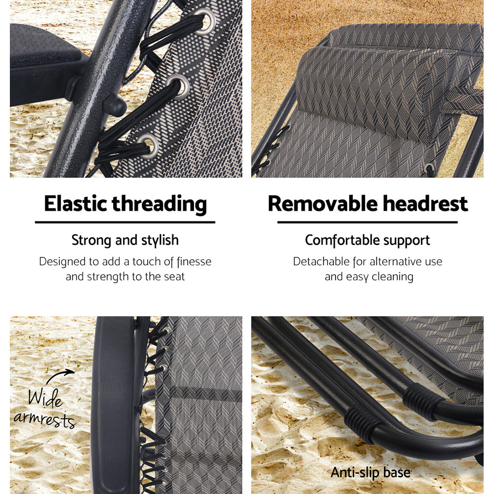 Despite the name, our lightweight Gardeon Zero Gravity Recliner can easily take up to 150kg of body weight under gravity. With its contemporary design and sleek finish, the zero gravity recliner is simply one of a kind. The unique tie-downs with the one-piece ventilated plastic mesh is a definite talking point. Everytime you have a seat, you are assured of a sit-down free of stress and heat.