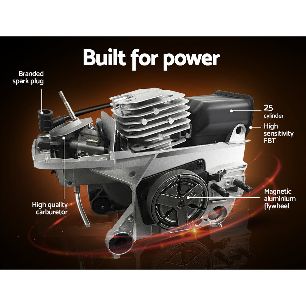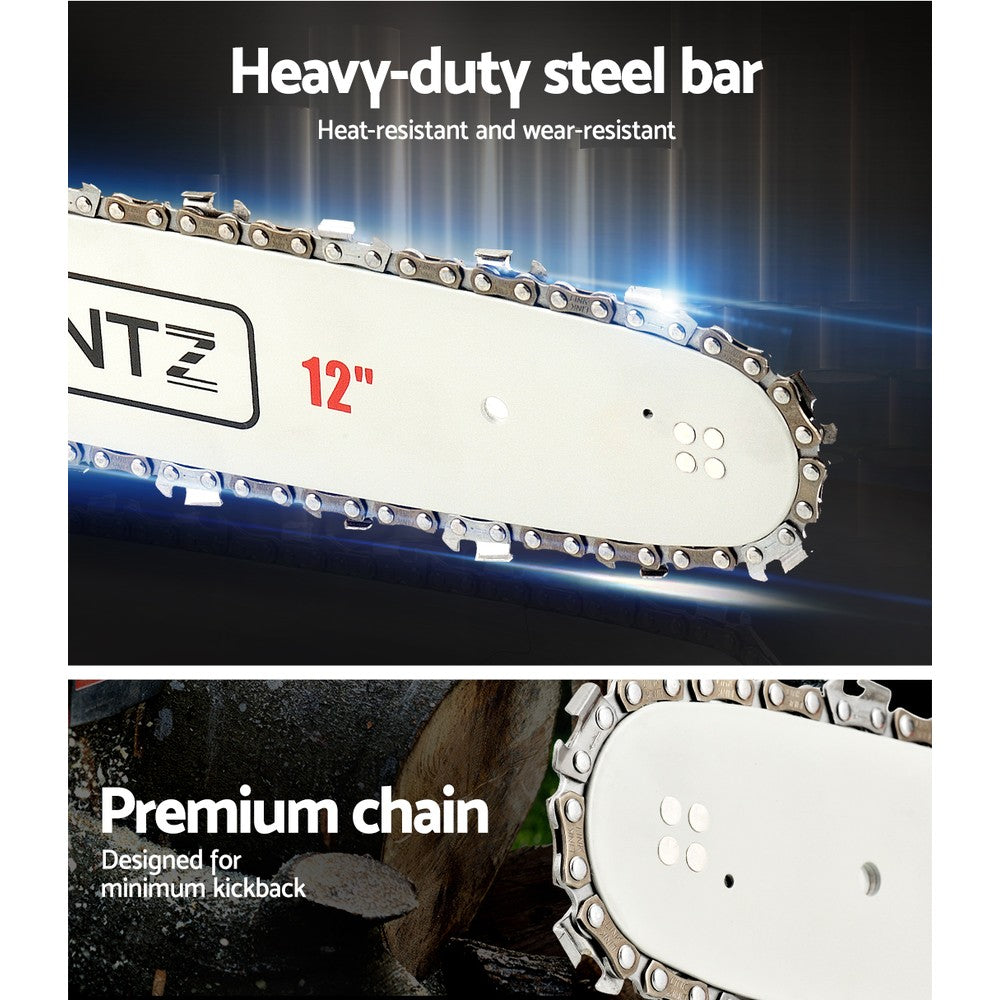 Featuring a lightweight and efficient 25CC, this Premium Commercial Grade Giantz chainsaw with a set of 12" robust bar and chain, it is perfect for backyard and smaller jobs. Instead of having an overpowered and heavy chainsaw, this would be the right size and power for smaller chopping tasks.