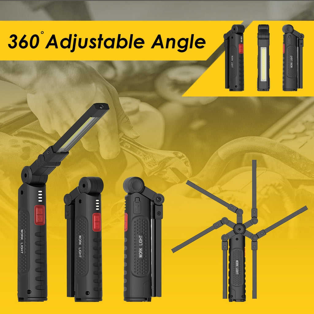 - Portable & Flexibility: Since this LED work light adjustable is cordless, can be folded and has 360-degree rotation to provide multi-angle illumination. You can put it in anywhere you like.
