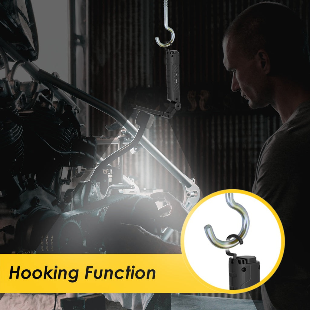 - Hook Design & Magnet Adsorption: LED work light magnetic built-in super-strong magnet, which can be attached to metal surfaces such as car bodies to provide temporary lighting.