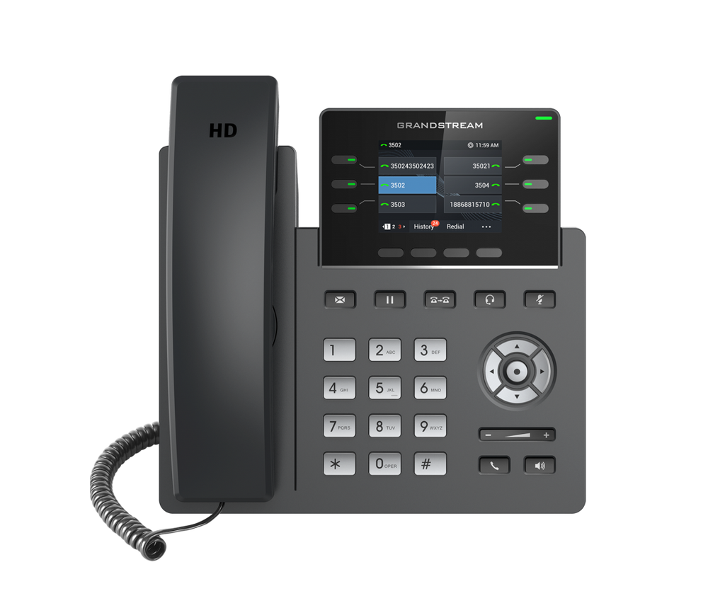 The GRP2613 is a powerful 3-line carrier-grade IP phone designed with zero-touch provisioning for mass deployment and easy management. It features a sleek design and a suite of next-generation features including 24 virtual multi-purpose keys (VPKs), dual Gigabit ports, a color LCD with swappable face plates for easy logo customization and more. The GRP series includes carrier- grade security features to provide enterprise-level security, including secure boot, dual firmware images and encrypted data storage. For cloud provisioning and centralized management, the GRP2613 is supported by Grandstream's Device Management System (GDMS), which provides a centralized interface to configure, provision, manage and monitor deployments of Grandstream endpoints. Built for the needs of desktop workers and designed for easy deployment by enterprises, service providers and other high-volume markets, the GRP2613 offers an easy-to-use and easy-todeploy voice endpoint.