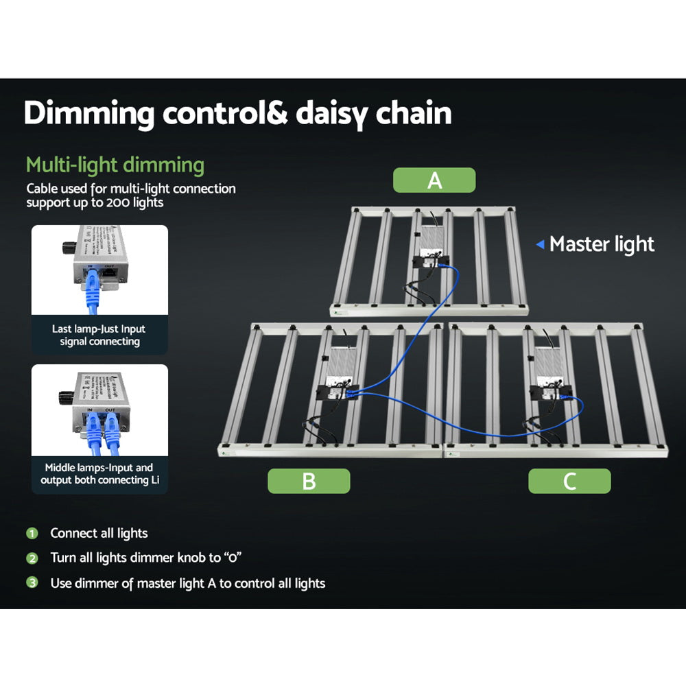 Dimmer knob added, ON/OFF and multi-connection function,more convenient to adjust the brightness. Up to 200 lights can be daisy-chained and control together on just one light