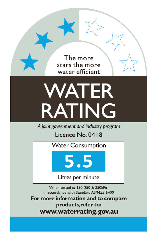 This shower accessory is WELS-rated (3 star and 5.5L/min) for water efficiency, ensuring you will help save money and the environment versus a non-WELS shower head.