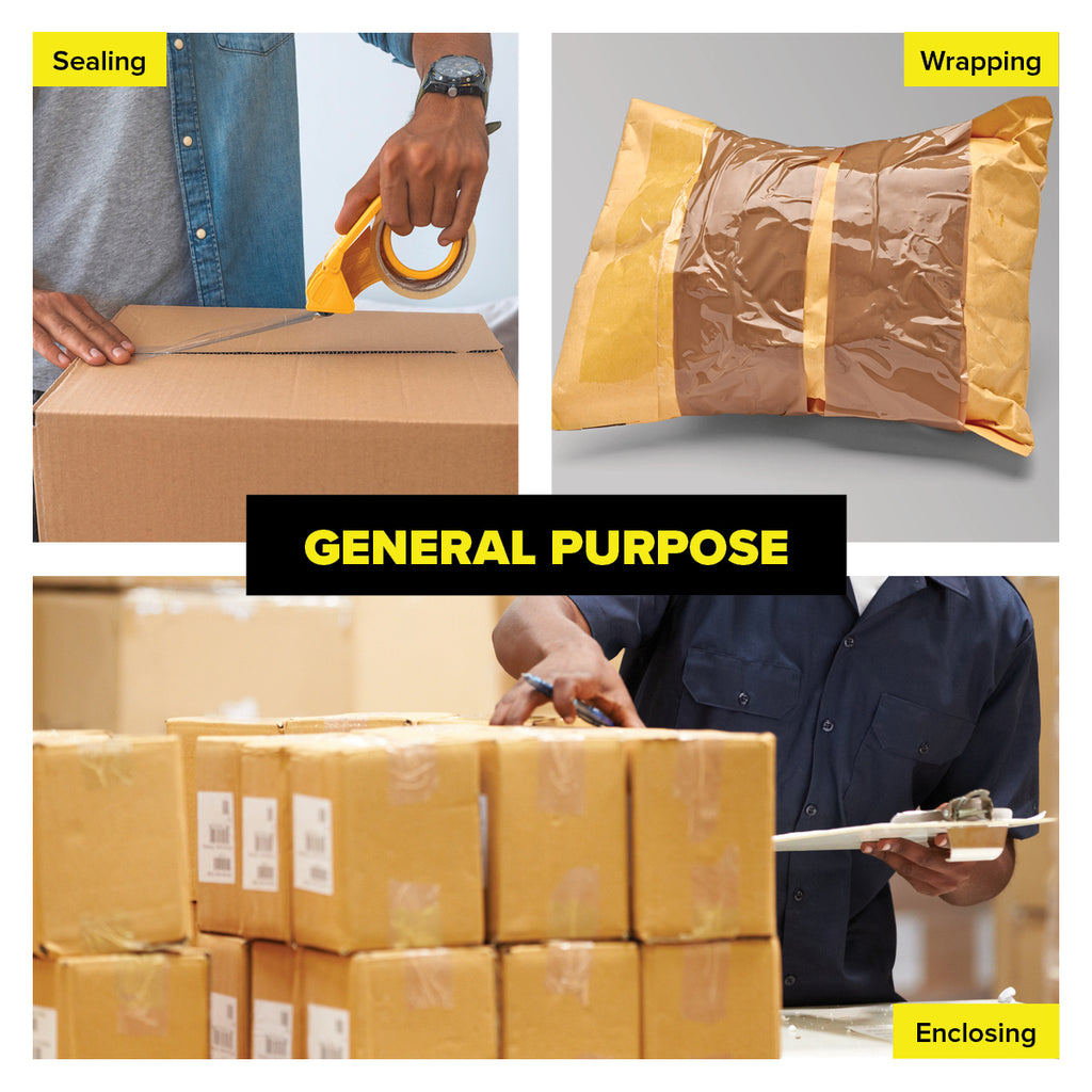 Handy Hardware® This extra wide all purpose packaging tape is perfect to use for sealing, wrapping and enclosing your boxes and packages. Ideal for home, work, warehousing and office environments.