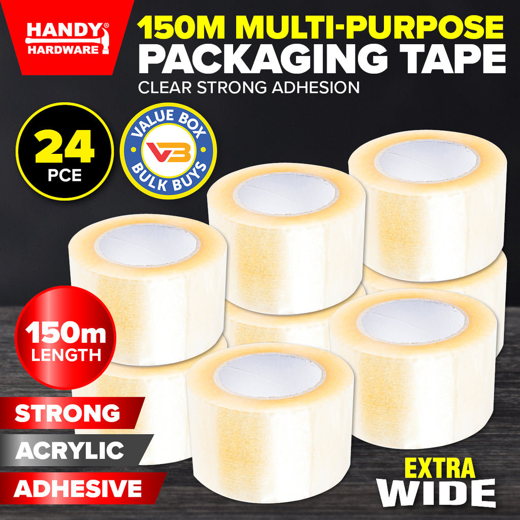 Handy Hardware® This extra wide all purpose packaging tape is perfect to use for sealing, wrapping and enclosing your boxes and packages. Ideal for home, work, warehousing and office environments.