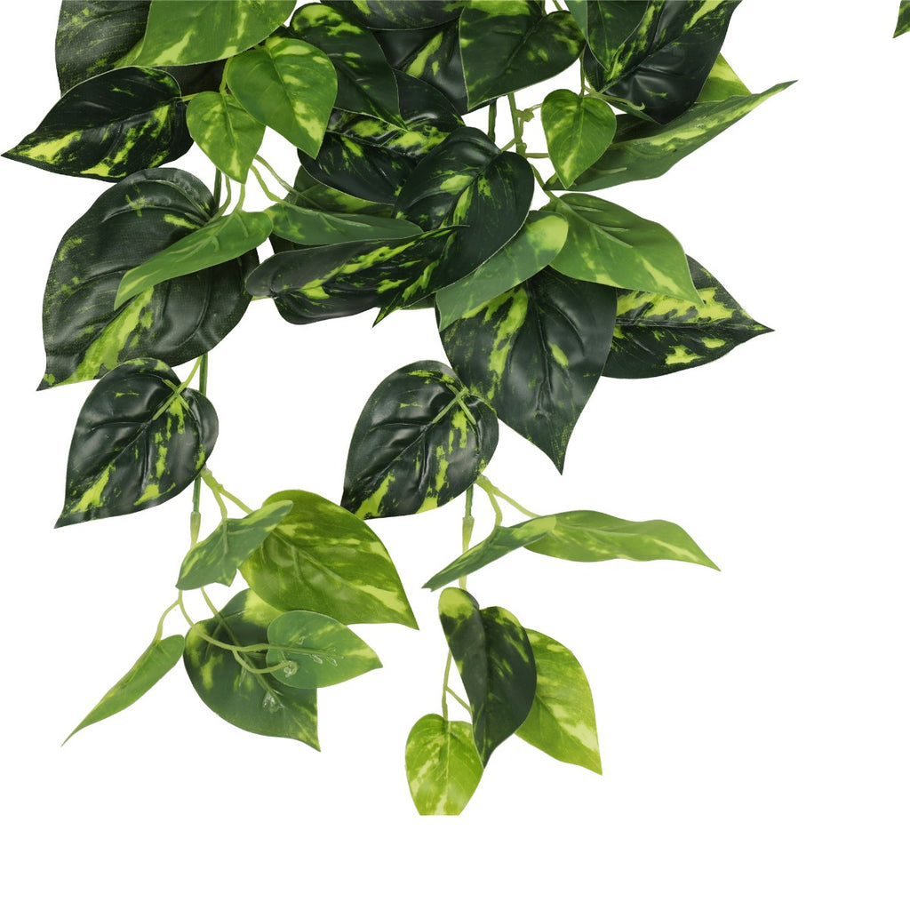 Variegated Green Hanging Creeper Bush with Philodendron Leaves. Have you ever thought 'this space looks a tad bland? Well, if you are after a simple yet effective way to liven up your home or officethis bright, yet natural looking hanging plant is the perfect solution. All you need to do is find the right location - maybe that is in a corner of the room,inside a pot, or simply attached to a railing.The hanging bush comes with many individual branches, which are then covered in lush green leaves.A superb hanging creeper bush with philodendron leaves.