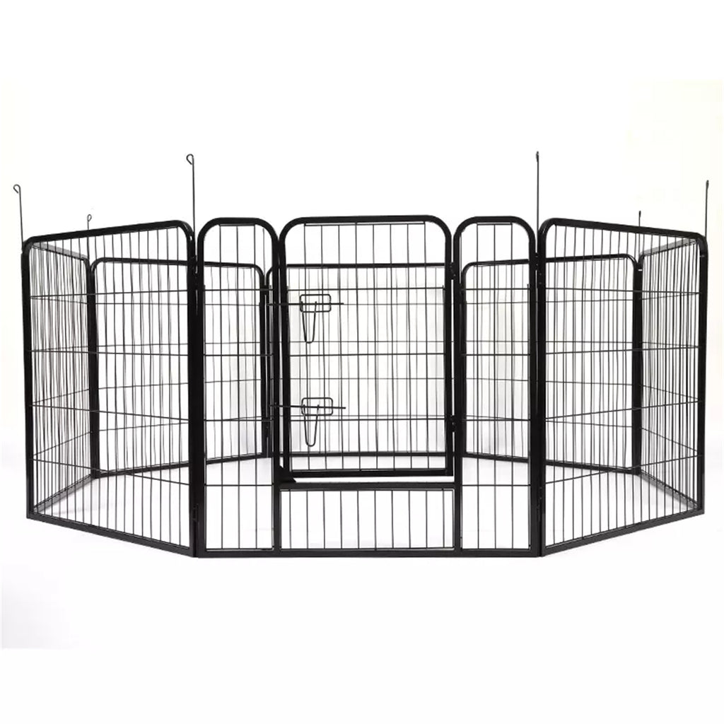 This pet fence is very suitable for all kinds of pets. It can be easily set for indoor and outdoor use. Eight durable panels can be folded for easy storage. Even better, it is equipped with a lockable door, so that you can completely rest assured that your pet can enjoy some fun when unattended. The entire game fence is collapsible for easy transport and storageThe strong metal ribbon has a rust proof coating to ensure long-term use. It can be used for single animals or multiple pets. The latch on the door allows your pet to stay safely in the practice fence. Round edges protect animals from injury, which also prevents damage to the floor