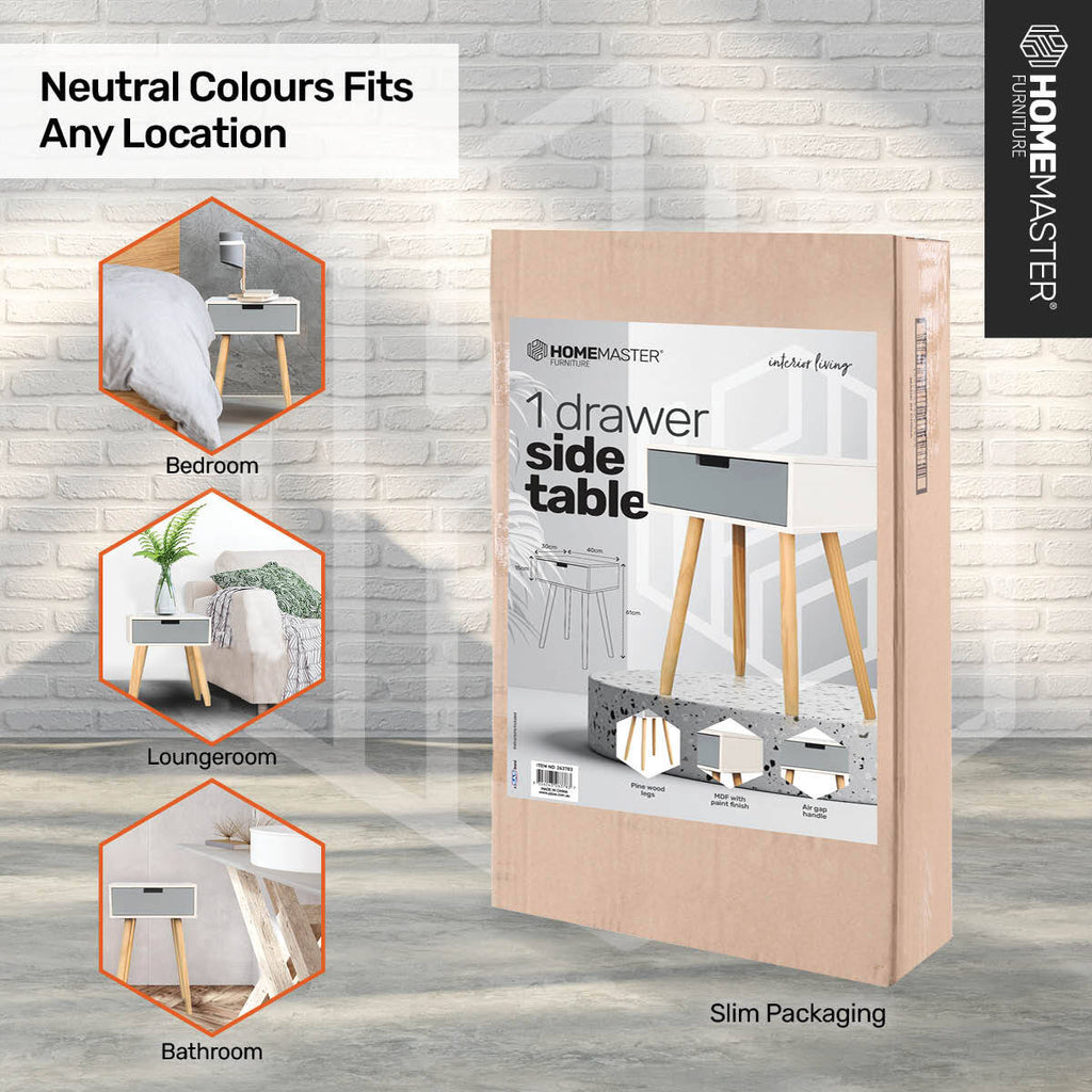 Home Master® Stylish and impressive with its sleek, neutral design this side table is an attractive piece to compliment any space within your home.