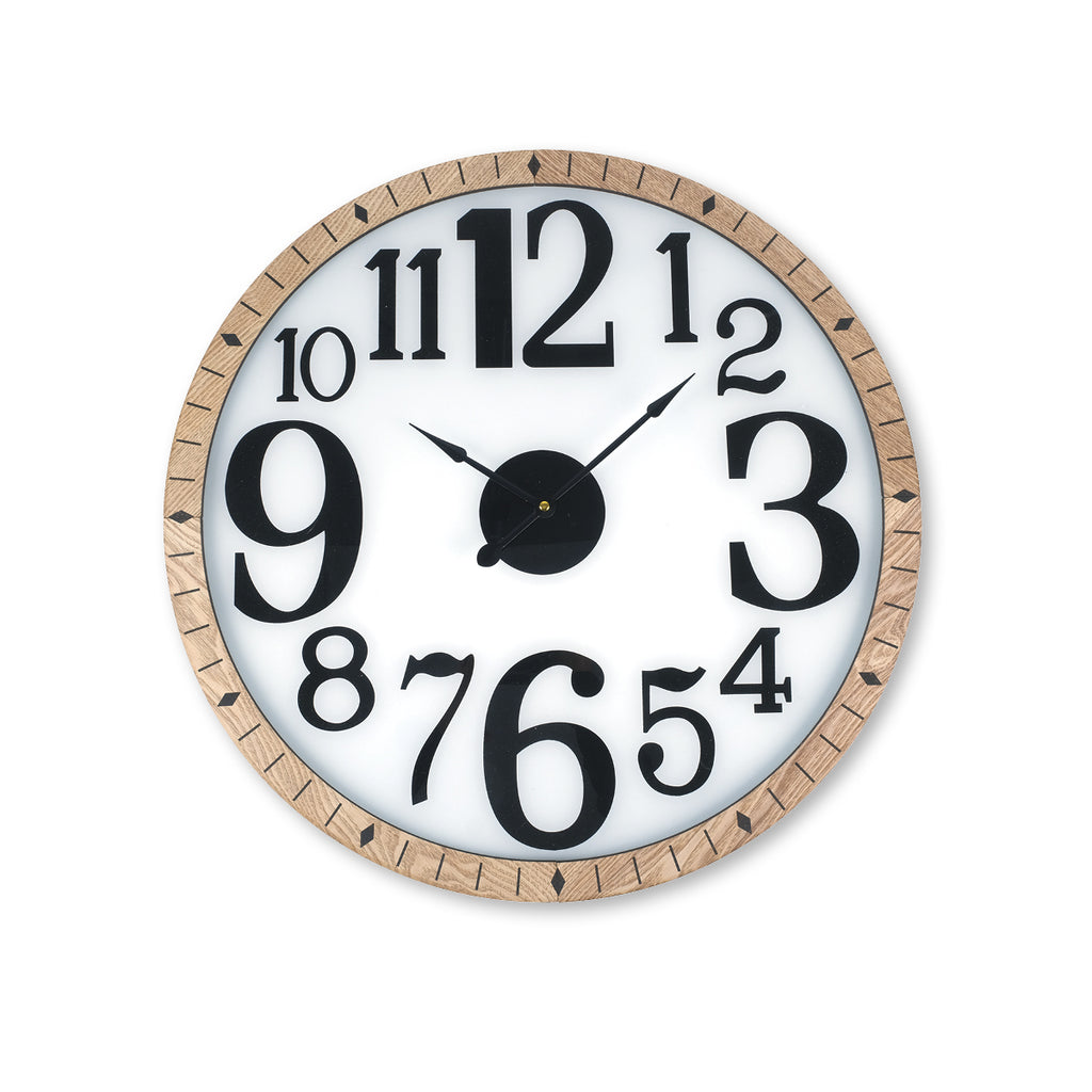 Home Master® This stunning modern style clock is a beautiful statement piece that will enhance any area within your home. With attractive accents and large artistic numbers, this is a stylish clock with timeless appeal.