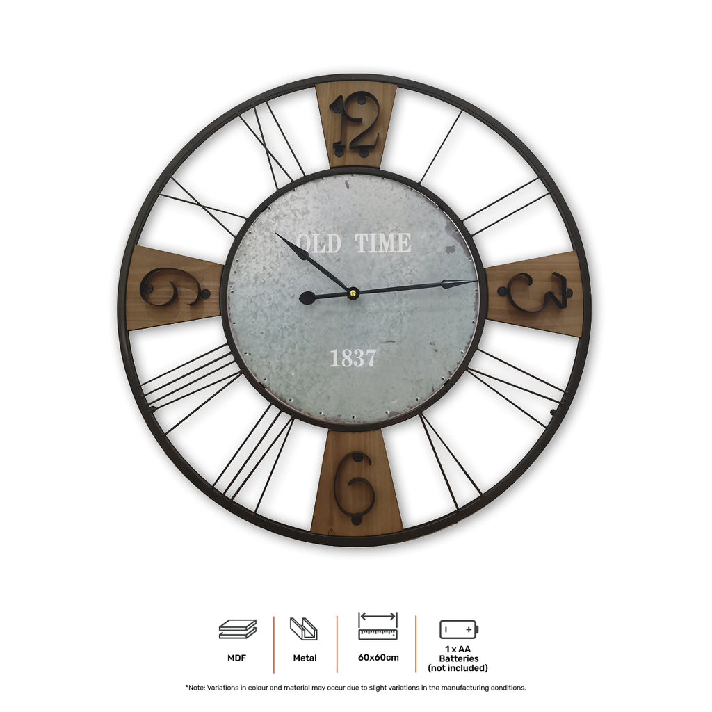 Home Master® This stunning vintage style clock is a beautiful statement piece that will enhance any area within your home. With metal accents and large numbers, this is a stylish clock with timeless appeal.