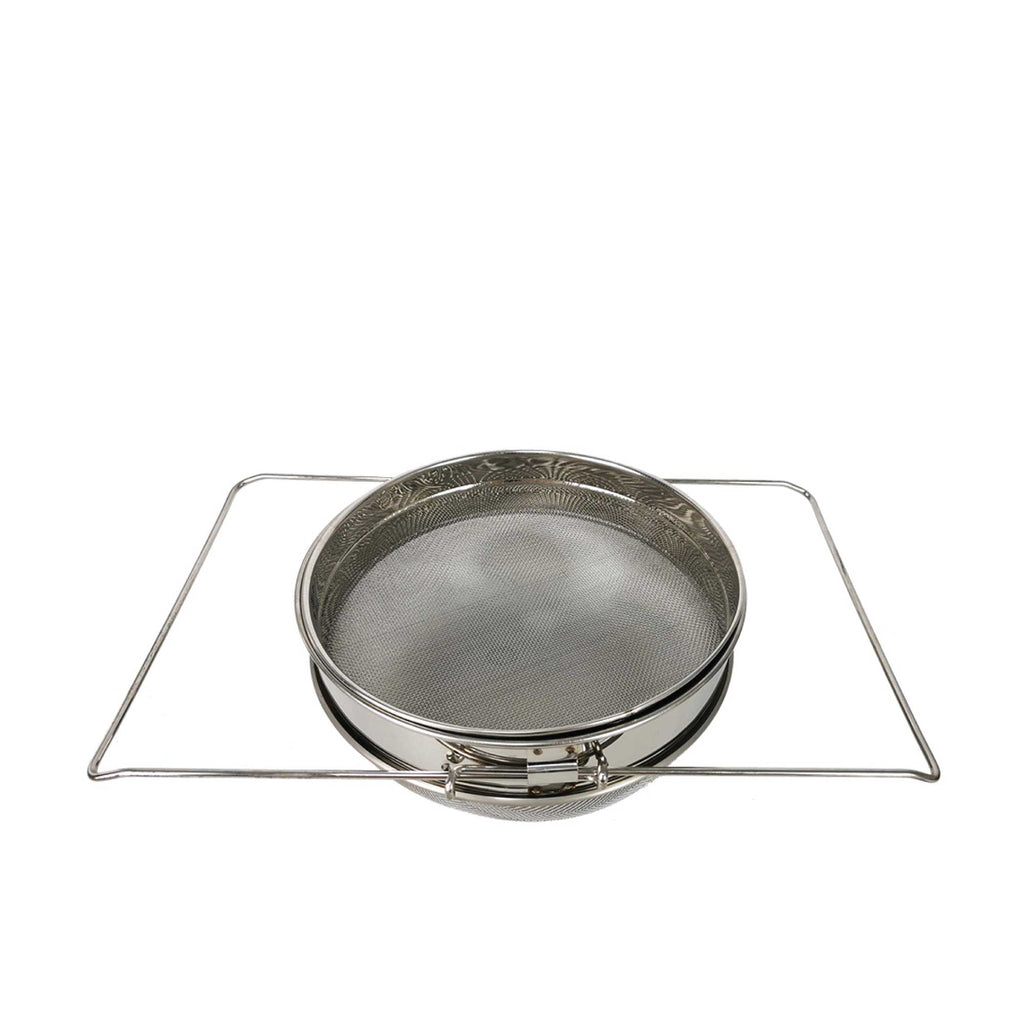 This stainless steel honey strainer is designed with two separating screens for effective honey filtering.