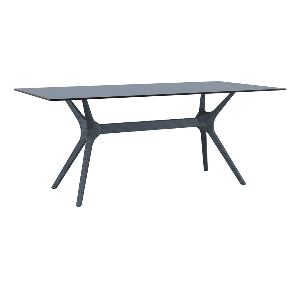 Table with rattan leg with HPL compact laminated tops 12 mm available in dark grey, brown and white colours. For indoor and outdoor use. Can be disassembled.