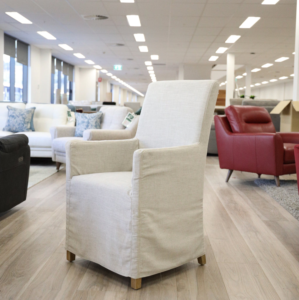 A few dining chairs have a timeless style. They go well with a variety of dining tables and interior design styles, and this dining chair is one of them. Designed in the French Rustic Country style, the beautiful chair features a simple, functional, substantial design that includes a loose cover with perfect cuts and comfy armrests. It has legs made of rubber wood, giving maximum strength to the chair. With a wide seat and wide backrest, the chair offers maximum relaxation and back support. The chair in a lovely Beige colour is made of sustainably harvested solid pine and MDF, and it is upholstered in 100% polyester linen. The lovely 8-piece set of fully assembled chairs comes with a two-year warranty.