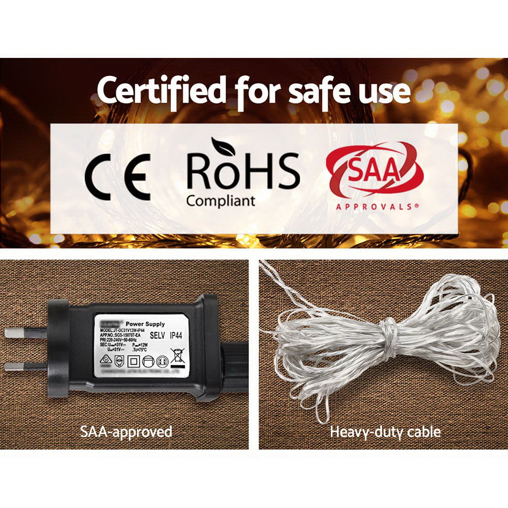 Featuring eight special lighting modes, the quality-made 500 LED lights are equidistantly spaced out along the String for even light distribution with a working lifespan of up to 25,000 hours. They are certified safe for all-weather use for both outdoors and indoors and comes with a SAA-approved adaptor and controller. Better still, they consume little energy courtesy of the efficient LED bulbs, and remain cool to the touch always.