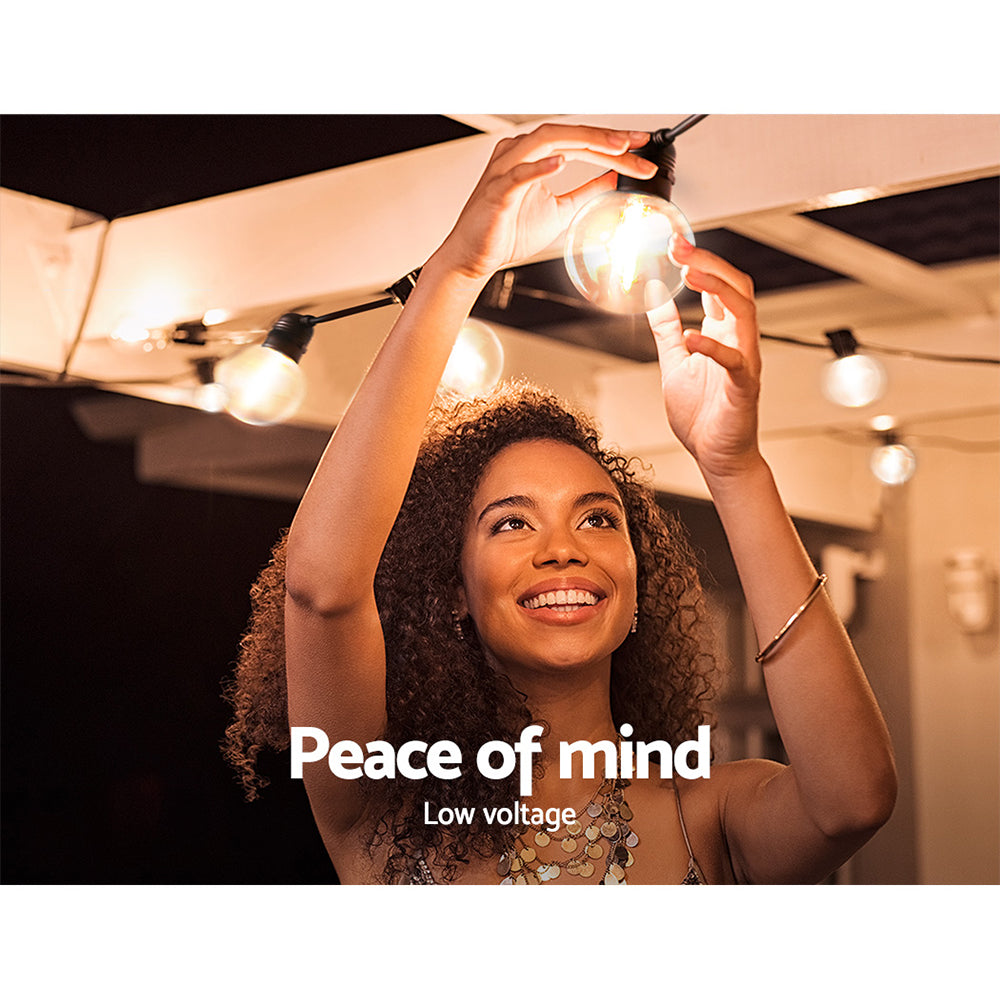 Our Jingle Jollys Festoon String Lights are great not only for wedding and birthday parties or special events, but also for creating a warm, inviting ambience with its bright and mellow glow. Suitable for both indoor and outdoor use, its IP44 rating means that it can be used in the rain and all weather conditions. Each bulb draws a very low voltage and is placed 90cm equally apart from each other throughout its 59m length for an even distribution of illumination and brightness. Not least, the each bulb has a 20,000 hours lifespan so that you can get to use the string lights for quite a while.