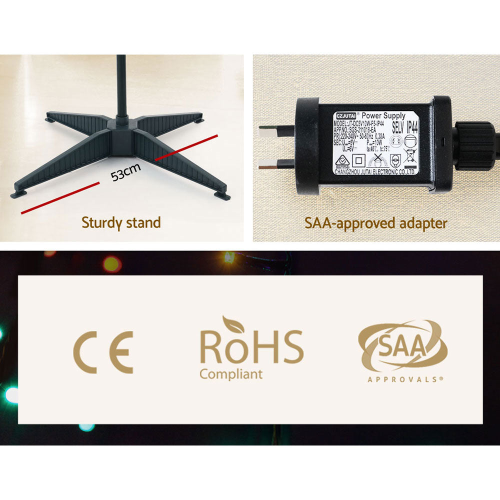 Get festive ready with our Jingle Jollys LED Christmas tree. It makes a perfect addition to your Christmas home decoration set that will give you a Christmassy feel. The Christmas tree delivers a fuller and more realistic look with its thick foliage and natural colour. It features 298pcs LED lights with 12 flashing modes and one LED star to fill your space with a Yuletide ambience and festive illumination. This 1.8m optic fibre Christmas tree has a sturdy stand for strength and durability, and the SAA-approved adaptor and low voltage ensure your safety. Its quick and hassle-free assembly makes for safe and convenient use. You can form the tree into your preferred shape with flexible branches. Bring home this Jingle Jollys decorative LED Christmas tree and have a merry Christmas.