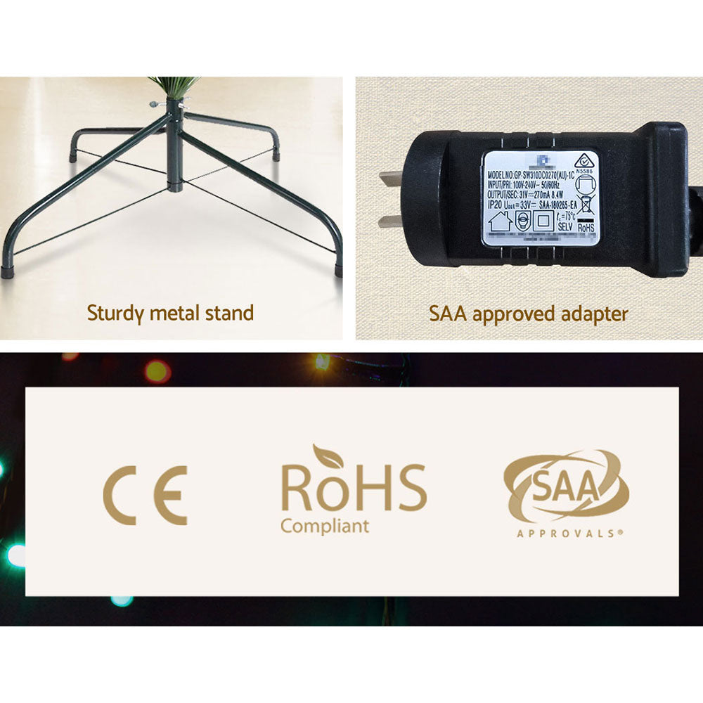 Make it a beautiful Christmas with our fine faux Jingle Jollys LED Christmas Tree to light up the occasion. Looking ever so real, the 2.4m tree features well-placed and generous tips for an extra-thick and lush look, with plenty of space to hang your favourite ornaments. The tree is symmetrical and compact with strong bushy branches that fan out wondrously. Better still, the tree comes with 1488 multicoloured LED bulbs with eight lighting effects to brighten up the ambience beautifully. No need to purchase and hang up extra string lights! Not least, the tree is easy to assemble and disassemble for storage until the next yuletide season comes along. Share the spirit of the season with our authentic-looking faux Christmas tree and add more joy to the most wonderful time of the year for everyone.